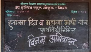 न्यू इंग्लिश स्कूल,गोकुळ-धावडे विद्यालयात हुतात्मा दिन व महात्मा गांधी पुण्यतिथीनिमित्त  महात्मा गांधी यांच्या प्रतिमेचे पुजन मोरणा शिक्षण प्रसारक मंडळ,मरळीचे अध्यक्ष मा.श्री.रविराज देसाई   (दादा) यांच्या हस्ते करण्यात आले. यावेळी श्री.शेजवळ सर यांनी मनोगत व्यक्त केले.कार्यक्रमाचे प्रास्ताविक व आभार श्री.घोणे सर यांनी मानले.यावेळी मोरणा भागातील श्री.संपत कोळेकर शेठ,श्री.गणेश भिसे,विद्यालयाचे मुख्याध्यापक श्री.केंडे सर,सर्व शिक्षक ,शिक्षकेतर कर्मचारी विद्यार्थी उपस्थित होते.