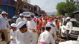 न्यू इंग्लिश स्कूल गोकुळ धावडे विद्यालयाचे झांज पथक आकर्षणाचा केंद्रबिंदू.