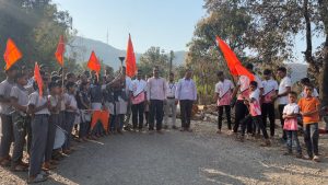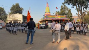 शिवजयंती निमित्त विद्यालयात छत्रपती शिवाजी महाराजांच्या अर्धाकृती पुतळ्यास विद्यालयाच्या वतीने मुख्याध्यापक मा.श्री. कुंभार एन. एस. सर यांनी पुष्पहार अर्पण करून अभिवादन केले.त्यानंतर जय शिवाजी,जय भारत पदयात्रा गोकुळ गांव ते न्यू इंग्लिश स्कूल गोकुळ-धावडे अशी काढण्यात आली. या पदयात्रेत गोकुळ गावच्या सरपंच सौ.नीता गालवे , विद्यालयाचे मुख्याध्यापक श्री कुंभार एन. एस.सर , सर्व शिक्षक व विद्यार्थी,ग्रामस्थ, पालक,माजी विद्यार्थी बहुसंख्येने उपस्थित होते. यावेळी विद्यालयाच्या लेझीम पथकाने लेझीम नृत्य सादर केले.या लेझीम पथकाचे ग्रामस्थांनी कौतुक केले.विद्यार्थ्यांच्या छत्रपती शिवाजी महाराज की जय या उदघोषाने शालेय परिसर दुमदुमून गेला. या पदयात्रेत सहभागी विद्यार्थ्यांना गोकुळ गावचे सामाजिक कार्यकर्ते श्री.किसन गालवे यांनी खाऊ वाटप केले.