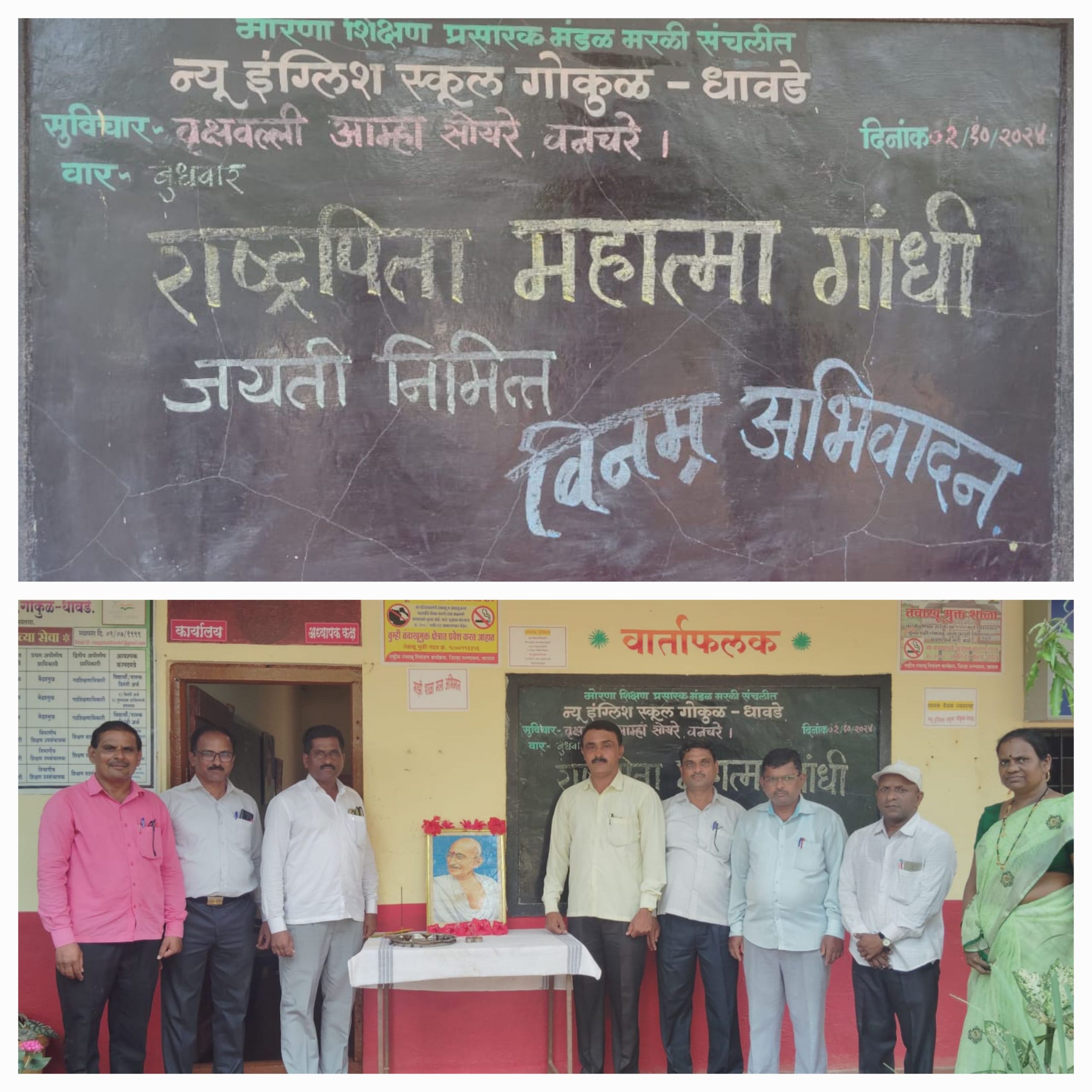 न्यू इंग्लिश स्कूल, गोकुळ -धावडे विद्यालयात महात्मा गांधी जयंती उत्साहात साजरी