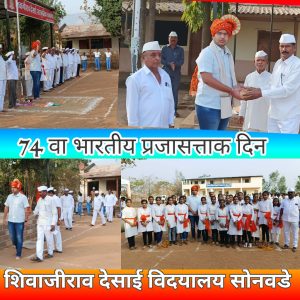 मोरणा शिक्षण संस्थेच्या शिवाजीराव देसाई विदयालय सोनवडे या विदयालयामध्ये आज 74 वा भारतीय प्रजासत्ताक दिन उत्साहात साजरा करण्यात आला,या ध्वजारोहन कार्यक्रमांसाठी पाटण युवा नेते आदित्यराज देसाई (दादा),सचिव मा.श्री.डी.एम.शेजवळ (दादा),सोनवडे,सुळेवाडी,हुंबरवाडी,शिंदेवाडी गावचे सरपंच-उपसरपंच सर्व सदस्य,शाळा व्यवस्थापन समितीचे सर्व पदाधिकारी,प्राथमिक आरोग्य केेंद्राचे वैदयकीय अधिकारी व कर्मचारी,पोलिस-पाटील,आजी -माजी विदयार्थी,पालक वर्ग,विदयालयाचे मुख्याध्यापक,शिक्षक वृंद शिक्षकेत्तर कर्मचारी वर्ग, सर्व विदयार्थी यांच्या उपस्थित संपन्न झाला