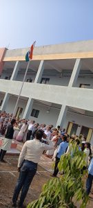 कार्यक्रमाची सुरुवात मा.प्राचार्य श्री कांबळे व्ही.एन (प्राचार्य सिनिअर कॉलेज) यांच्या हस्ते ध्वजारोहणाने करण्यात आली. राष्ट्रगीत व ध्वजगीत झाल्यानंतर माननीय प्राचार्यांनी विद्यार्थ्यांना उदबोधित केले विद्यार्थ्यांच्या मनामध्ये देशभक्ती तथा देशाप्रती समर्पणाची भावना रुजली पाहिजे तथा आपल्या हातून देशसेवा घडली गेली पाहिजे हे त्यांनी आपल्या भाषणातून व्यक्त केले.